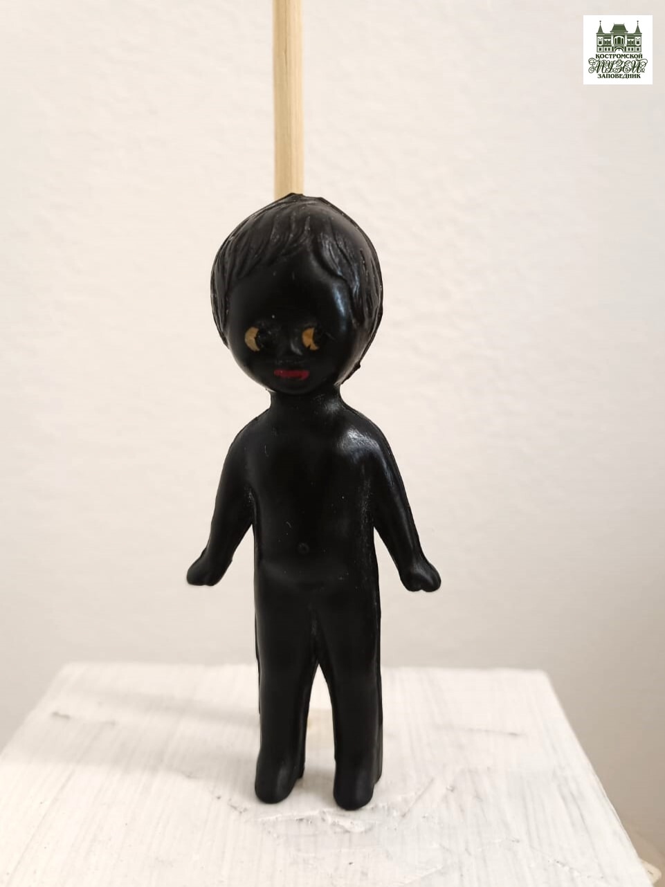 Игрушка, получившая название "черный человечек", была передана в дар музею костромичкой Анной, которая сохраняла ее с детства в идеальном состоянии. Согласно предварительным исследованиям, кукла может быть продукцией одной из фабрик Эстонской ССР, что делает её особенно ценным образцом советской игрушечной промышленности того периода.
