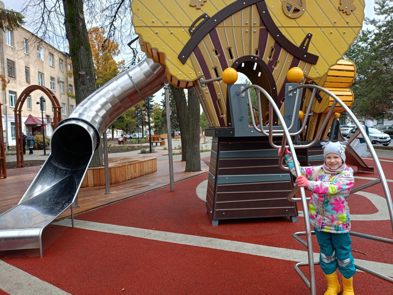 В обновленном сквере появились специализированные игровые зоны для детей, безопасный водоем каскадного типа с водным экскаватором и декоративной мельницей. Для молодежи обустроили амфитеатр. Для старшего поколения созданы комфортные места отдыха со скамейками в тени новых насаждений: сосен, яблонь и различных кустарников. Вдоль пешеходных зон установлены декоративные элементы.