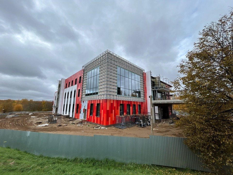 Строительные команды занимаются отделочными работами как внутри, так и снаружи уже возведенного здания. Параллельно ведется прокладка внутренних электрических сетей и установка системы отопления.