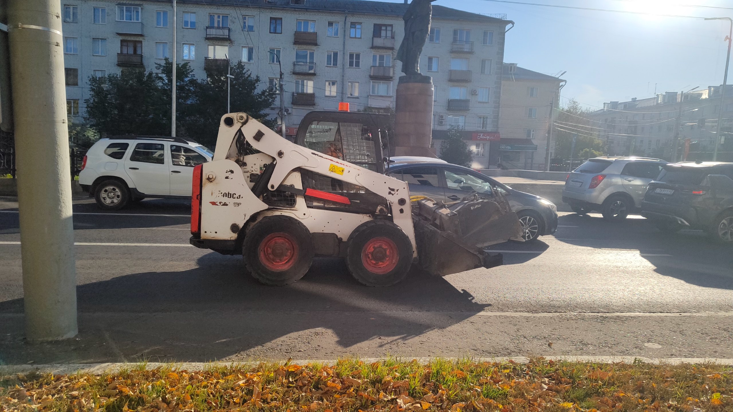 На этом транспорте четко виден опознавательный знак «Тихоходное ТС».