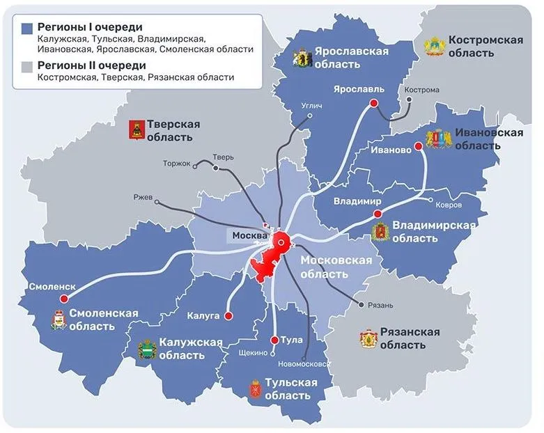 На начальной стадии развития ЦТУ, который называют "наземным метро", будут запущены дополнительные комфортабельные поезда, следующие в Калугу, Тулу, Владимир, Иваново, Смоленск и Ярославль. Это запланировано до 2030 года. Кострома, наряду с Тверью и Рязанью, войдет во вторую фазу программы, чье осуществление намечено до 2035 года.