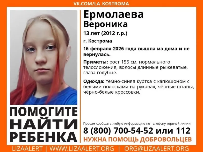 В Костроме разыскивается 13-летняя девочка, которая пропала 16 февраля. Об этом сообщили представители поисково-спасательного отряда «ЛизаАлерт».
