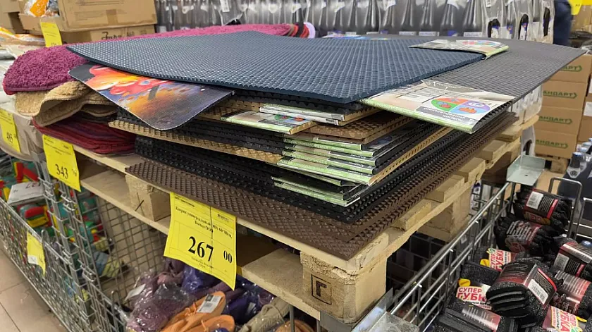 На днях заглянула в магазин «Светофор» присмотреть свежие поступления и, к своему удивлению, обнаружила множество занятных вещей. В сегодняшнем обзоре с фотографиями и ценами расскажу о самых примечательных: кухонная утварь, одежда, обувь и даже напольные покрытия, на которые точно стоит обратить внимание. Сразу в глаза бросились эти ковры, но непонятно, как они выглядят в развёрнутом виде, а на некоторых из-за упаковки сложно разобрать узор. Габариты: полтора на два метра. Стоимость: 1535 рублей.
