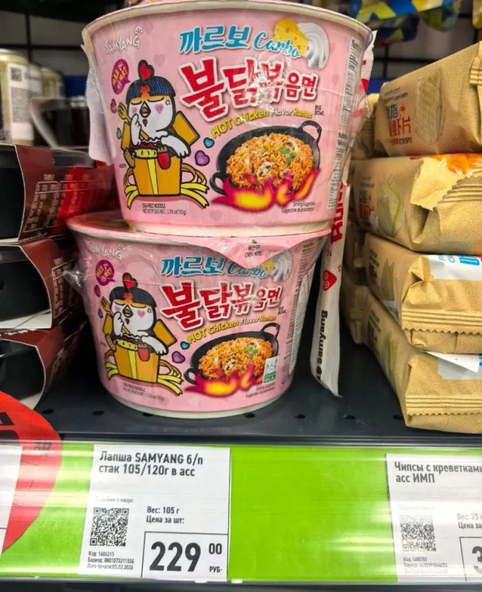 Лапша SAMYANG — это отдельная история. Экстремальная острота сочетается с насыщенным куриным вкусом, создавая незабываемый гастрономический опыт. Предупреждаю сразу: если вы не любите острое, проходите мимо. Но для любителей пощекотать нервы самое оно.