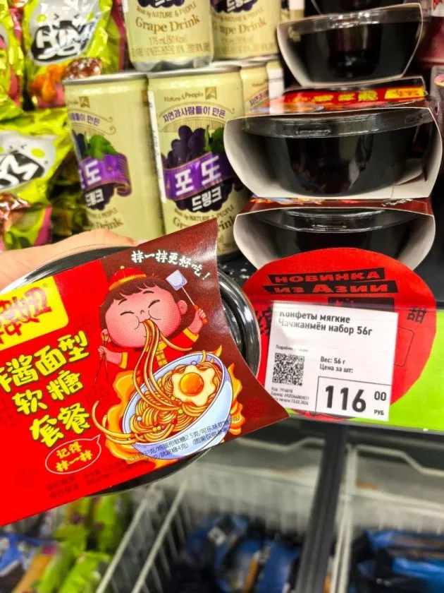 Мягкие конфеты Чачжанмён стали самым неожиданным открытием. Это китайская сладость с нежной, жевательной текстурой. Напоминает мармелад, но с более интересной структурой — чуть тягучие нити создают неповторимое ощущение, когда конфета буквально тает во рту.