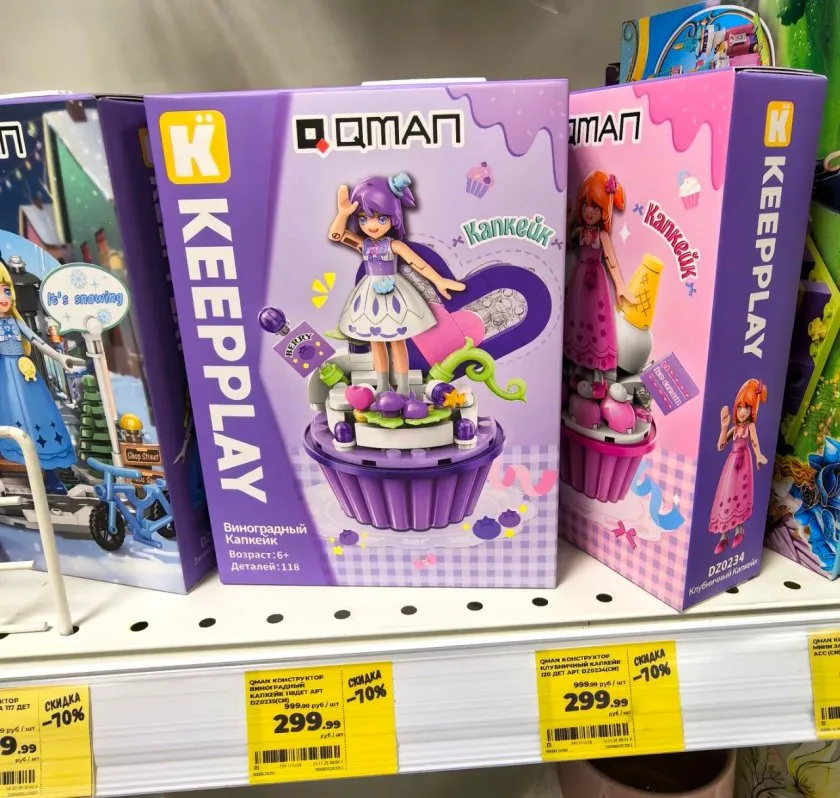 Первое, что привлекло внимание — конструктор в виде капкейка. Это настоящая находка для юных кондитеров. С таким набором можно создавать красивые десерты, развивая фантазию и мелкую моторику.