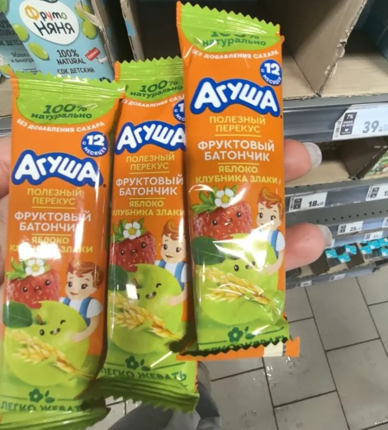 Батончики «Агуша» — удобный и полезный перекус. Натуральный состав, яркий вкус и компактный формат – то, что нужно в дороге или на прогулке. Всего за 44 рубля.