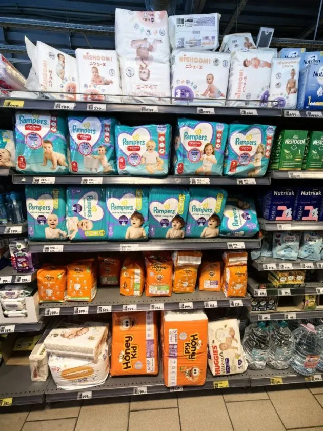 Для полного комплекта заботы Магнит предлагает внушительный стеллаж с подгузниками и трусиками – так необходимыми в уходе за самыми маленькими.