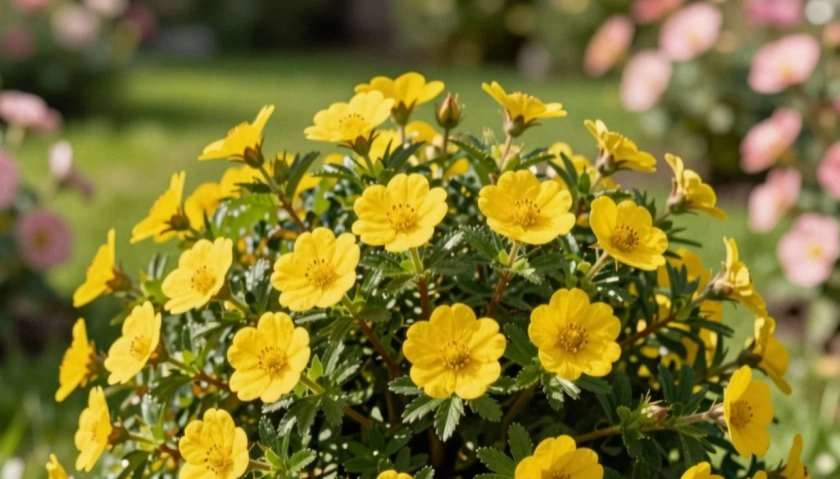 Лапчатка кустарниковая — яркий пример второго типа. Её можно встретить в городских дворах, где за ней никто специально не ухаживает, а она цветёт с начала лета до поздней осени.